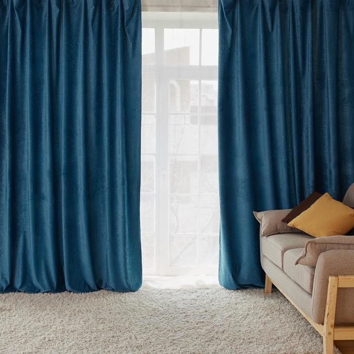 Штора портьерная «Этель» 230*270 см Валенсия Лазурный ,100% п/э