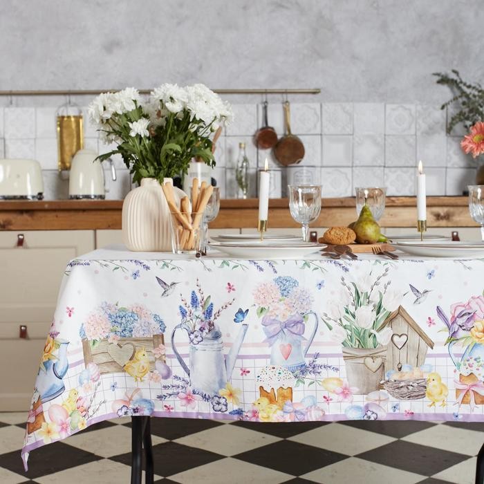 Скатерть «Этель» Цыплята и куличи 220×147 см, 100% хл, саржа 190 гр/м2