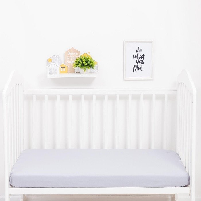 Простыня на резинке «Крошка Я», 60*120+20 см, серый