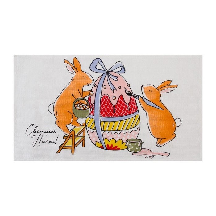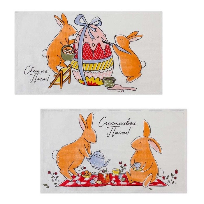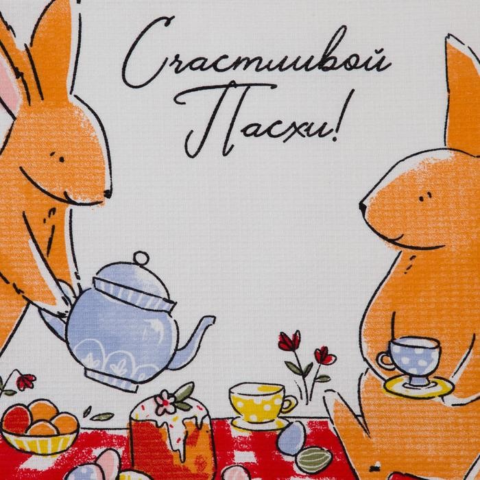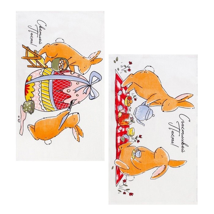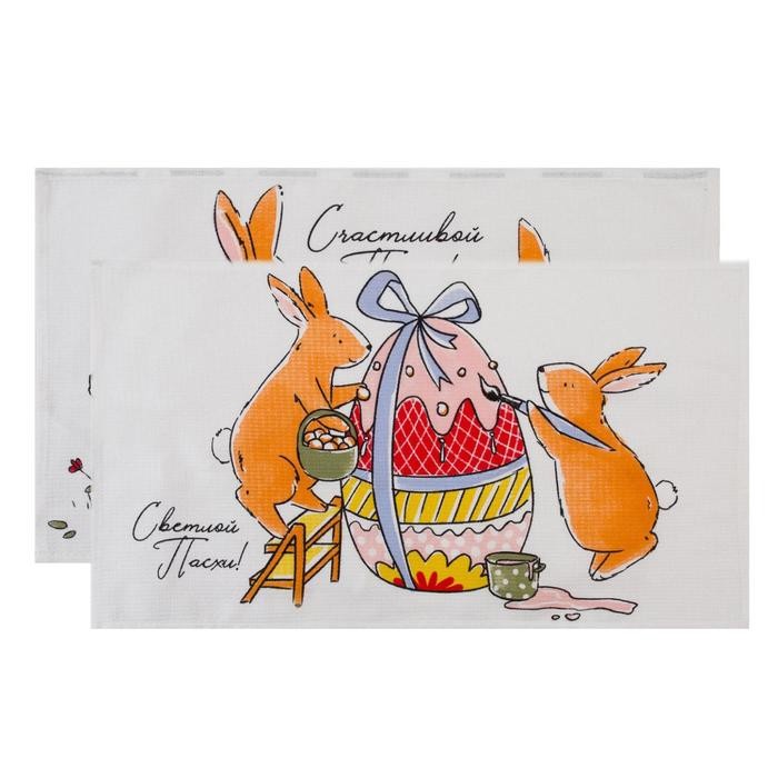 Набор кухонных полотенец Доляна «Пасхальные зайчики», 35х60см-2 шт, 100% хл, вафля 160 г/м2