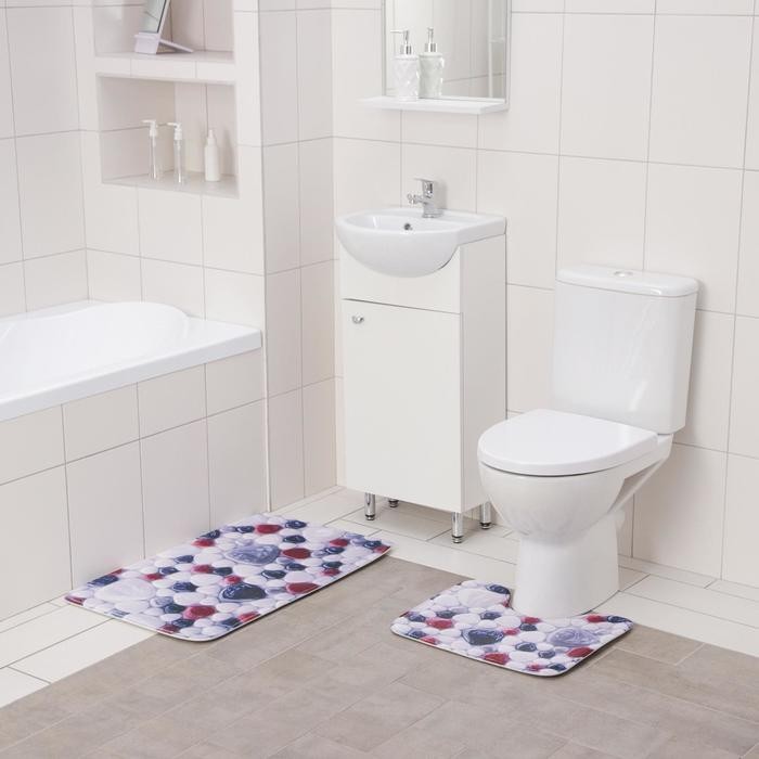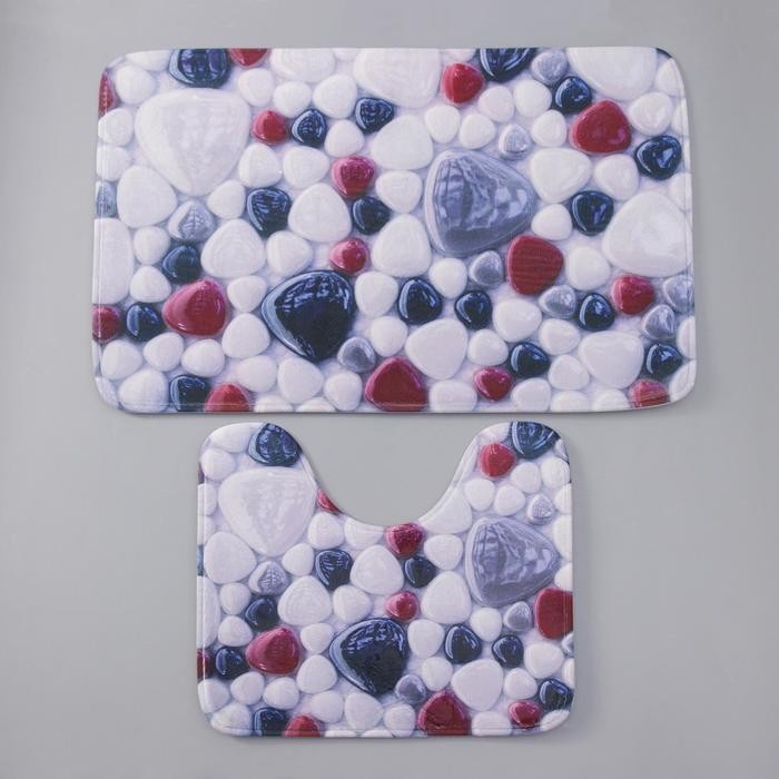 Набор ковриков для ванны и туалета Доляна «Цветная галька», 2 шт: 40×50, 50×80 см