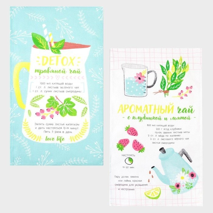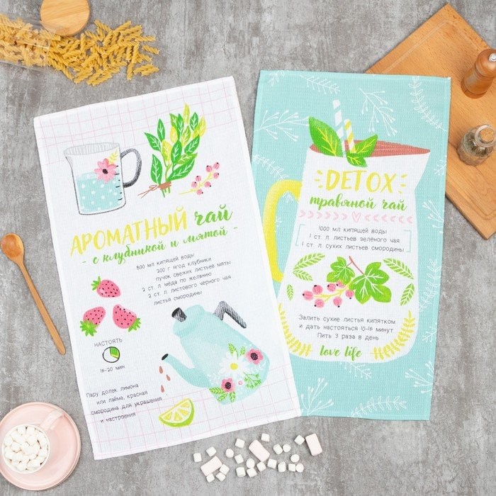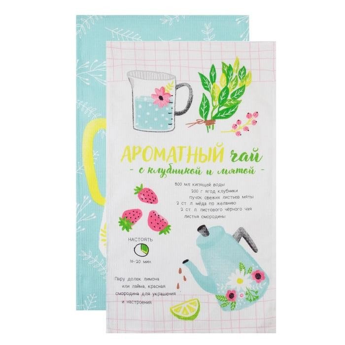 Набор кухонных полотенец Доляна «Ароматный чай», 35х60см-2 шт, 100% хл, вафля 160 г/м2