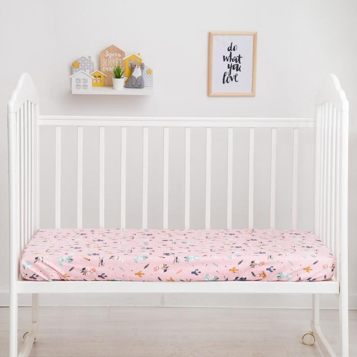 Простыня на резинке «LoveLife» Лесные зверята 60*120+20 см, 100% хлопок, сатин