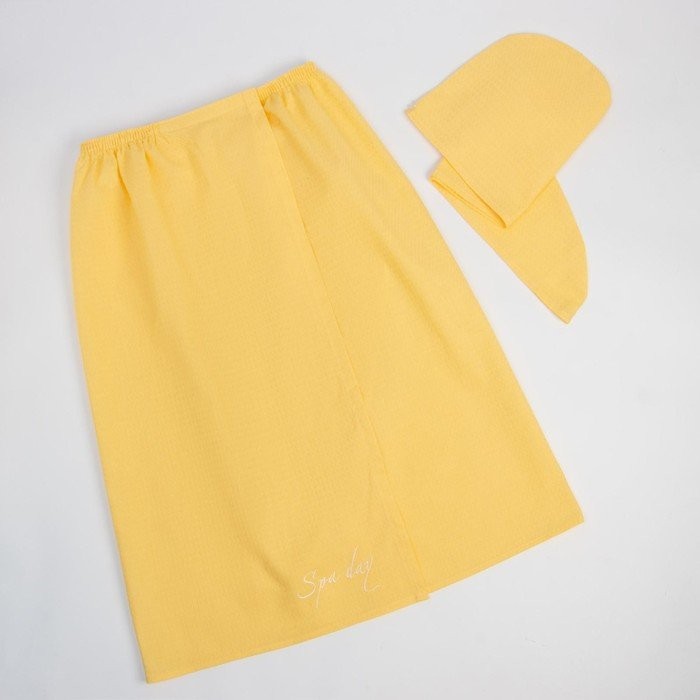 Набор для бани Spa day жен.парео 80×150±4 см, чалма, 100% хл., ваф.полотно, жёлтый
