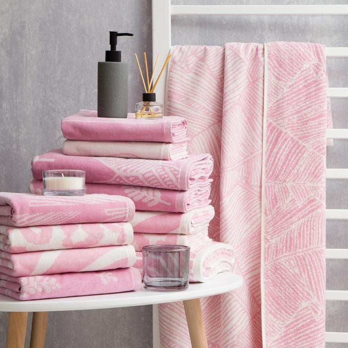 Полотенце махровое Этель Foglie розовый, 70×130 см, 100% хл, велюр, 420 гр/м2