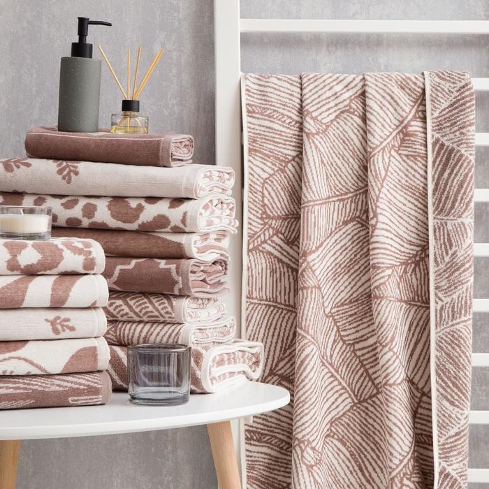 Полотенце махровое Этель Foglie беж, 70×130 см, 100% хл, велюр, 420 гр/м2