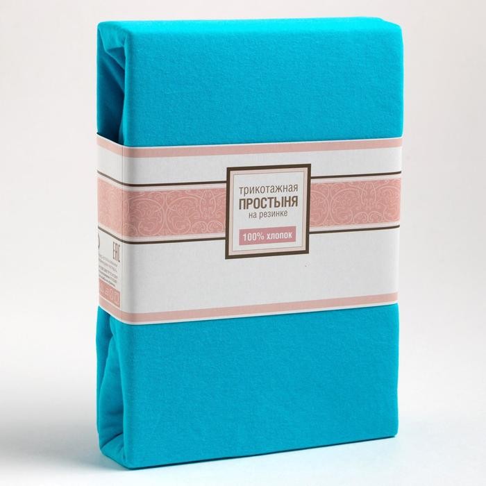 Трикотажная простынь на резинке 160х200х25см, бирюзовый кулирка
