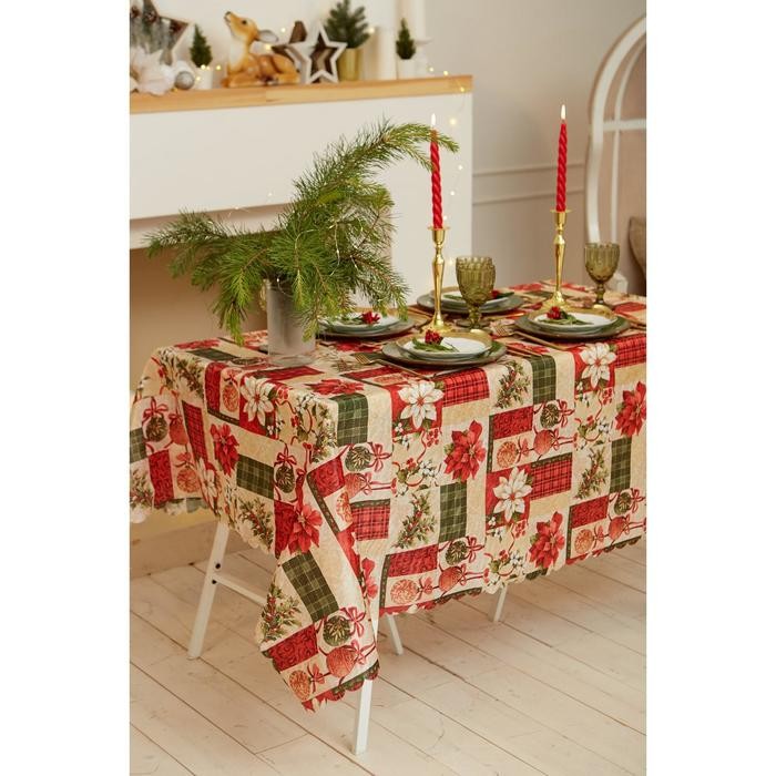 Скатерть Доляна «Новый год: Новогодние игрушки» 145*180 +/- 2 см, 100% п/э