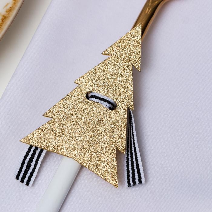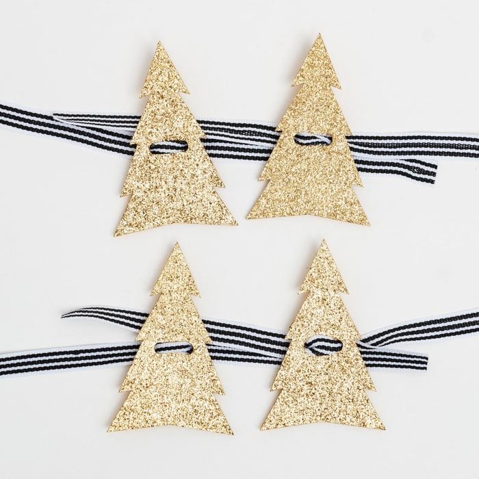 Набор для декора столовых предметов «Елка», 4 шт, цв. золото 5×7,5 см 100% п/э, фетр