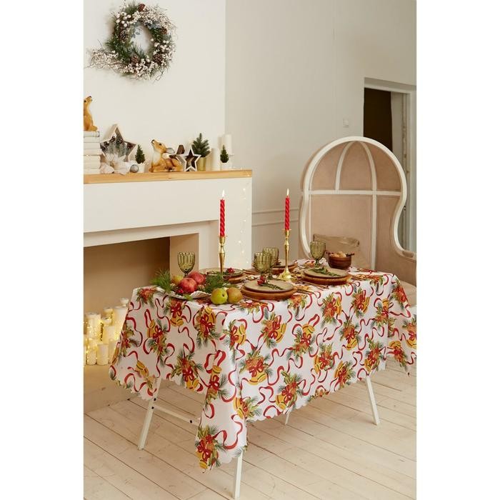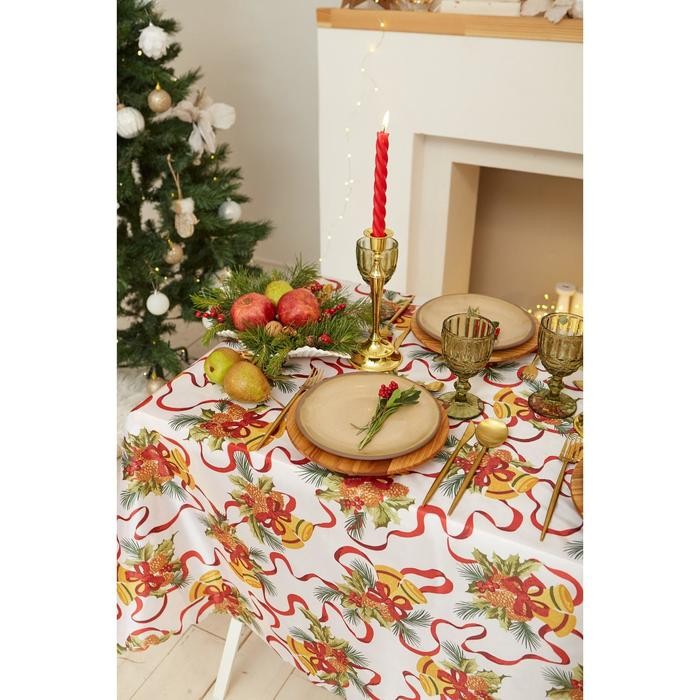 Скатерть Доляна «Новый год: Новогодние колокольчики» 145*220 +/- 2 см, 100% п/э