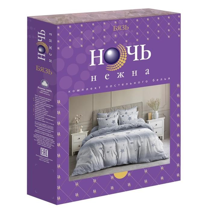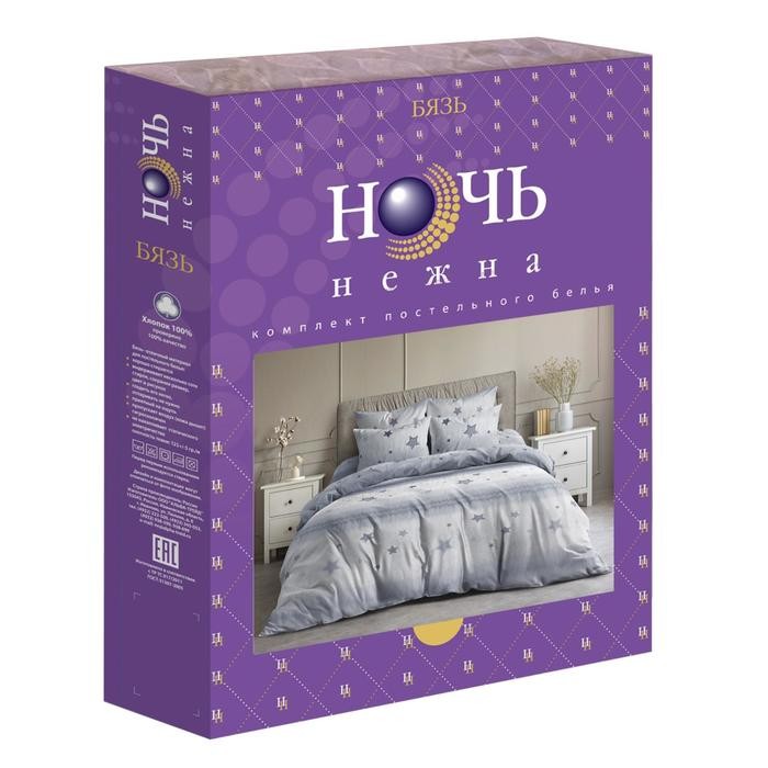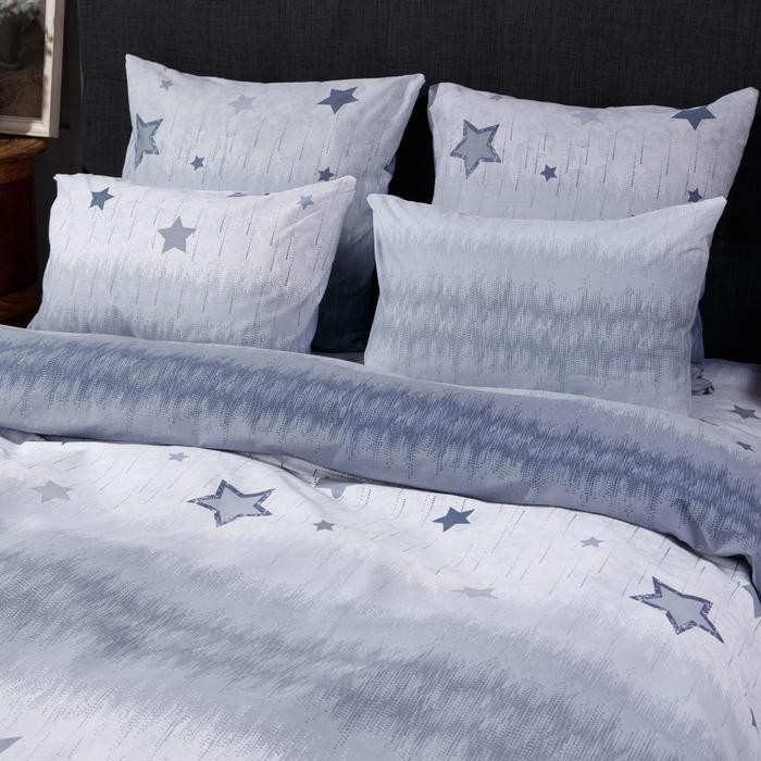 Постельное бельё Евро Ночь Нежна «Звёздочки серые» 200х220см, 200х220см, 70х70см-2шт