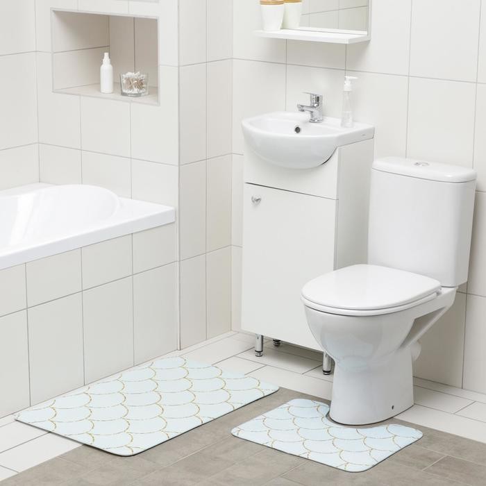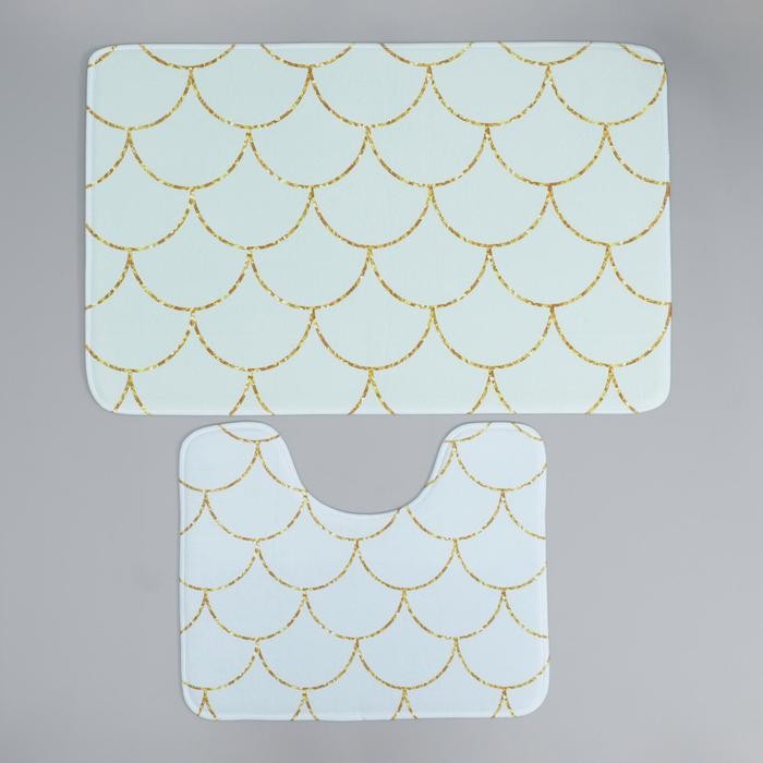 Набор ковриков для ванны и туалета Доляна «Чешуя», 2 шт: 50×80, 40×50 см
