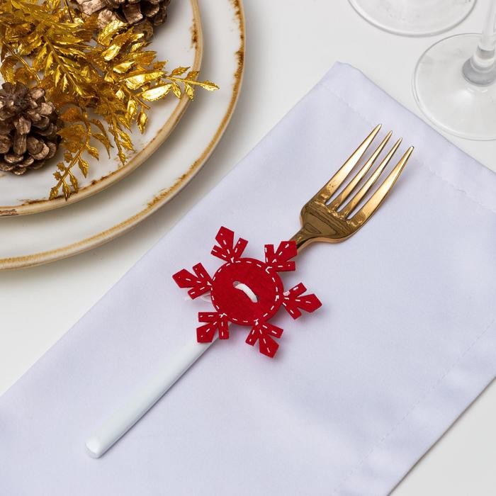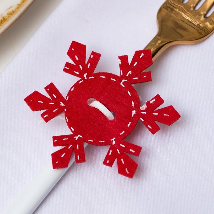 Набор для декора столовых предметов «Снежинка», 4 шт, цв.красный 6×7 см, 100% п/э, фетр
