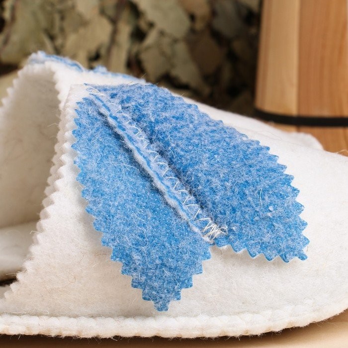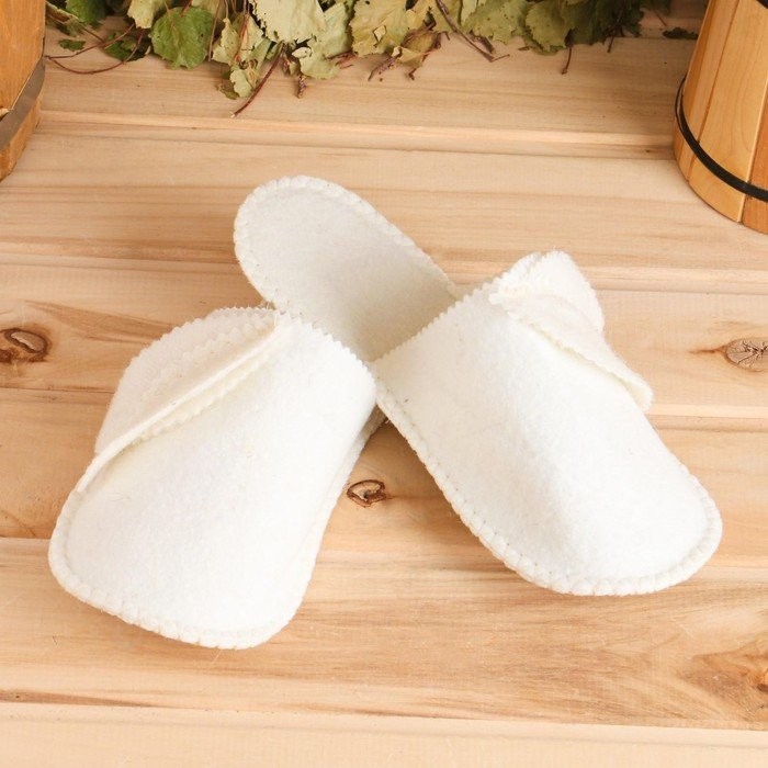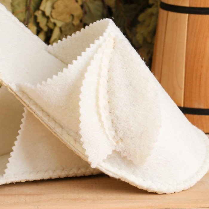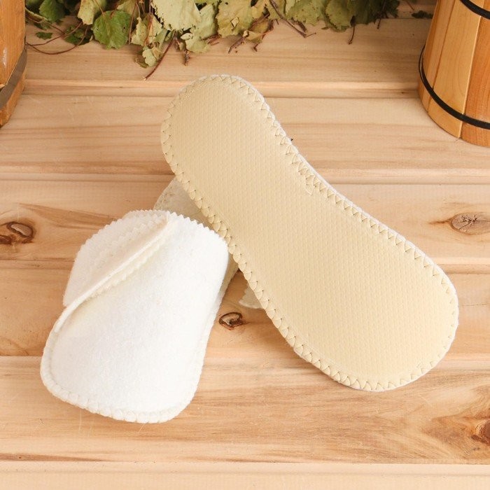 Войлочные тапочки с округлым закрытым носком обеспечивают комфорт и безопасность во время посещения бани и сауны. Натуральный войлок отлично впитывает излишки влаги, поддерживает оптимальную температуру, расслабляет и массирует стопу. Изделия выполняют также и гигиеническую функцию, что немаловажно при посещении общественных заведений.