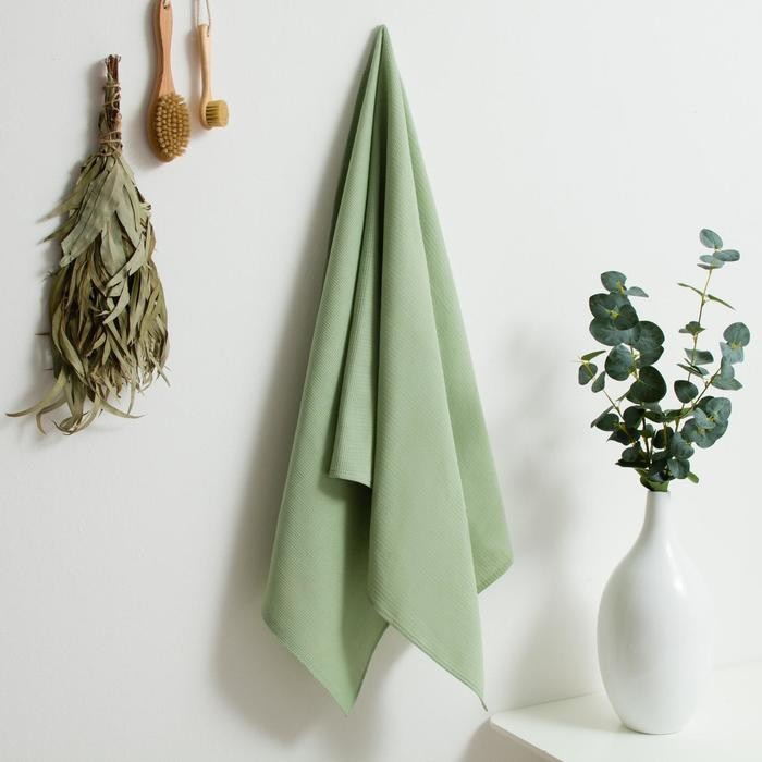 Полотенце вафельное 70×150 см, олива, хлопок 100%, 160г/м2