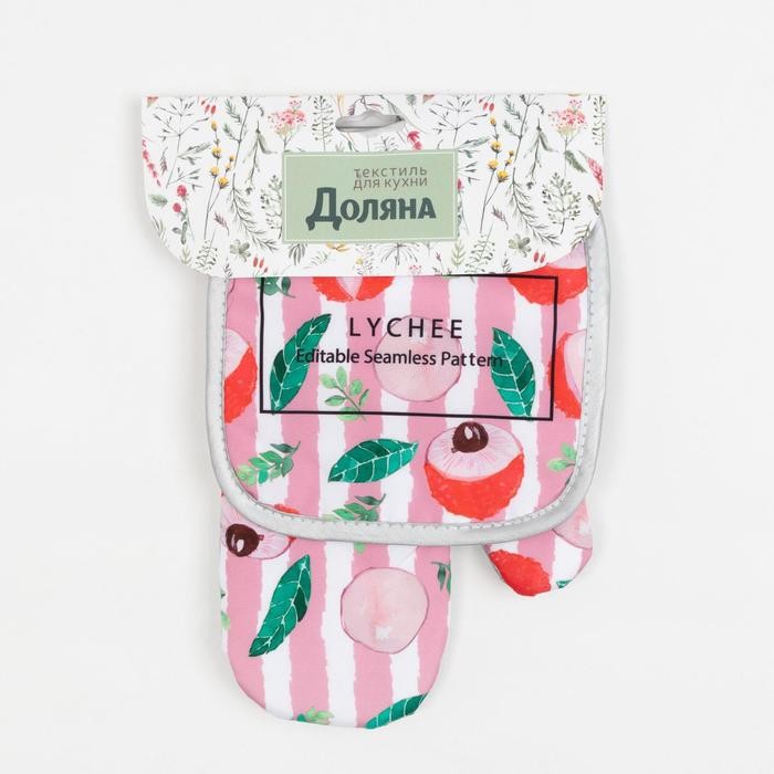 Кухонный набор Доляна «Личи» прихватка 17*17 см, варежка-прихватка 26*16 см, 100% п/э