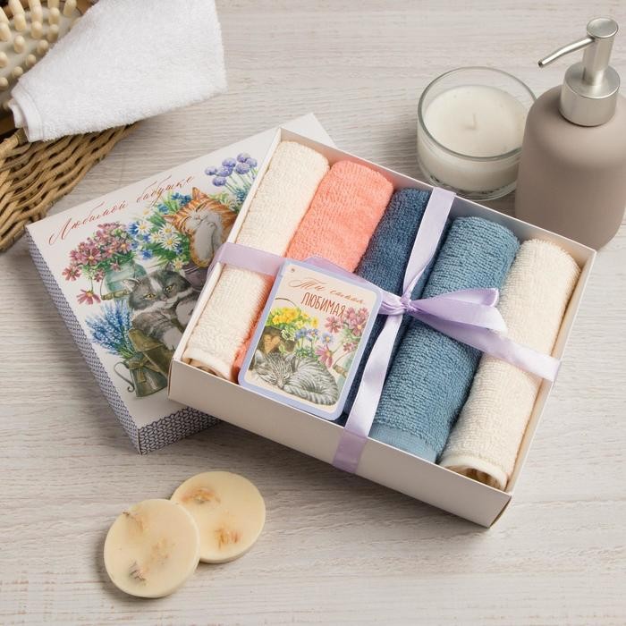 Набор махровых салфеток «Любимой бабушке» 30×30 см -5шт, 100% хл, 340гр/м2
