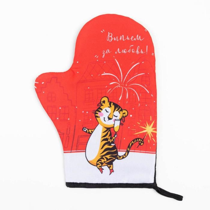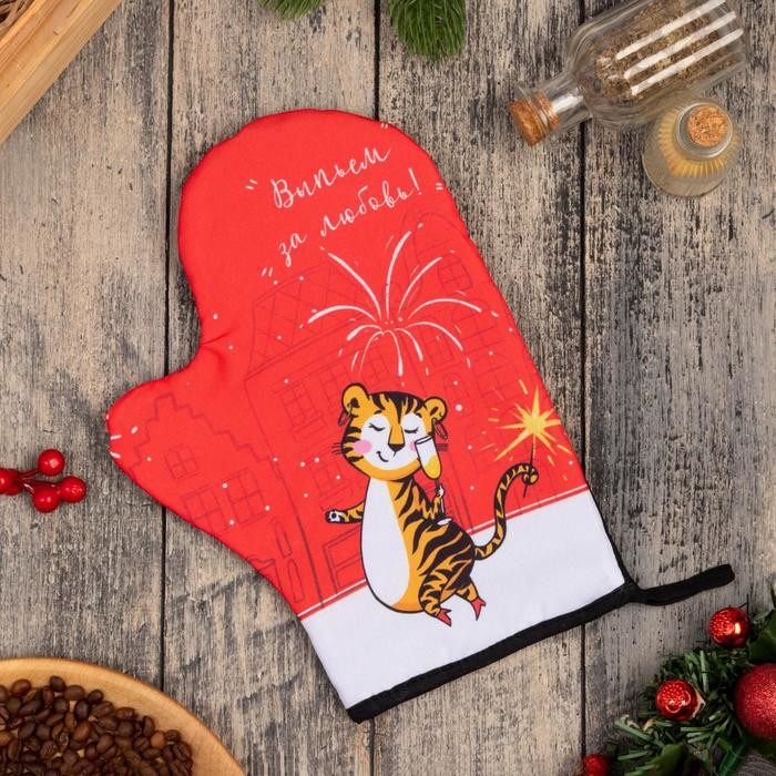 Варежка-прихватка «Новый год: For love» 20х28см,35% х/л,65% п/э,ватин 250г/м2