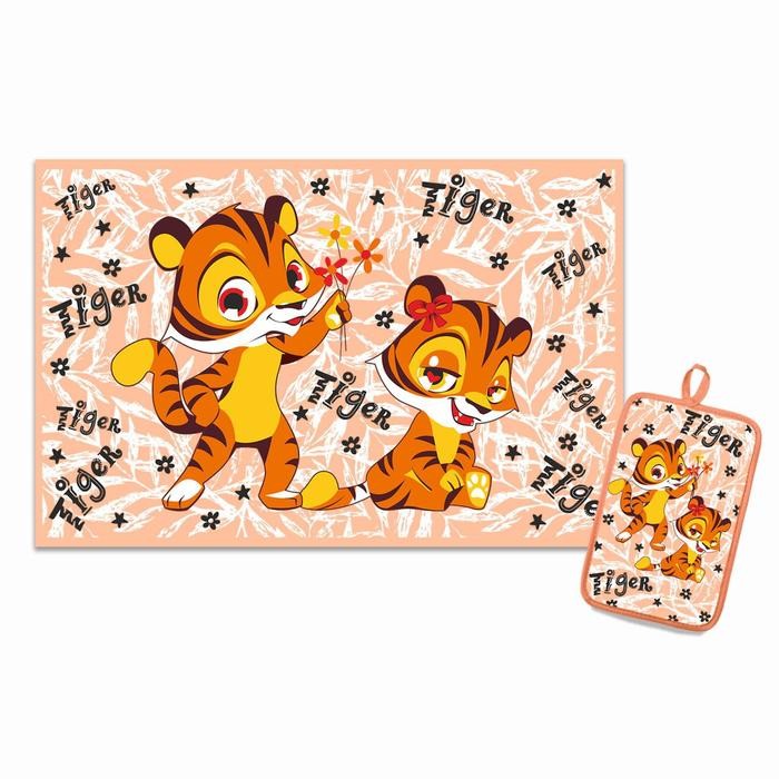 Кухонный набор Романтик (полотенце 39×60+прихватка 14,5×22), тем-персик, хлопок 100%, 200г/м