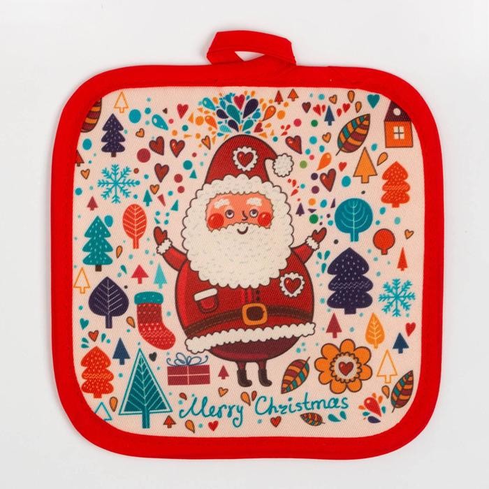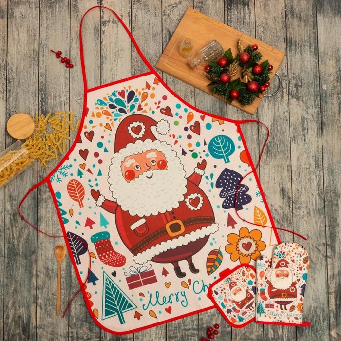 Кухонный новогодний набор Доляна «Санта», прихватка 17*17см,варежка 26*16см,фартук 60*80 см 100% п/э
