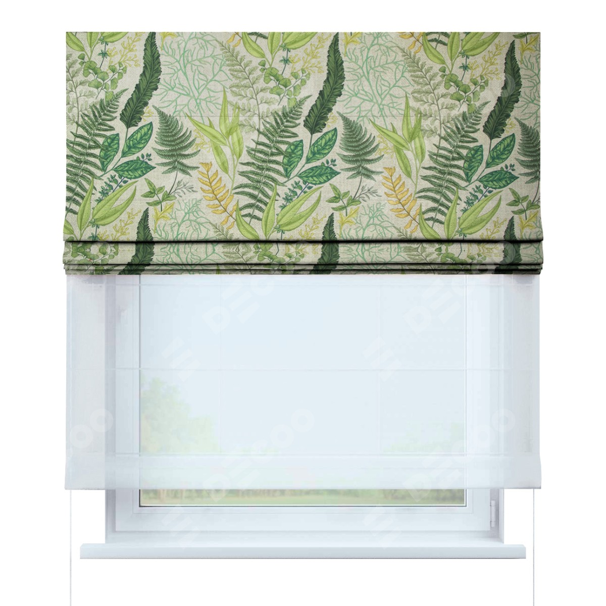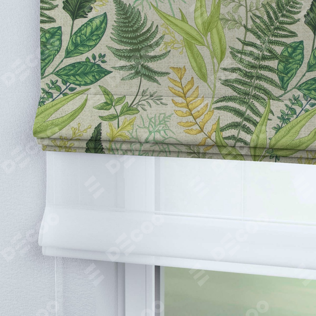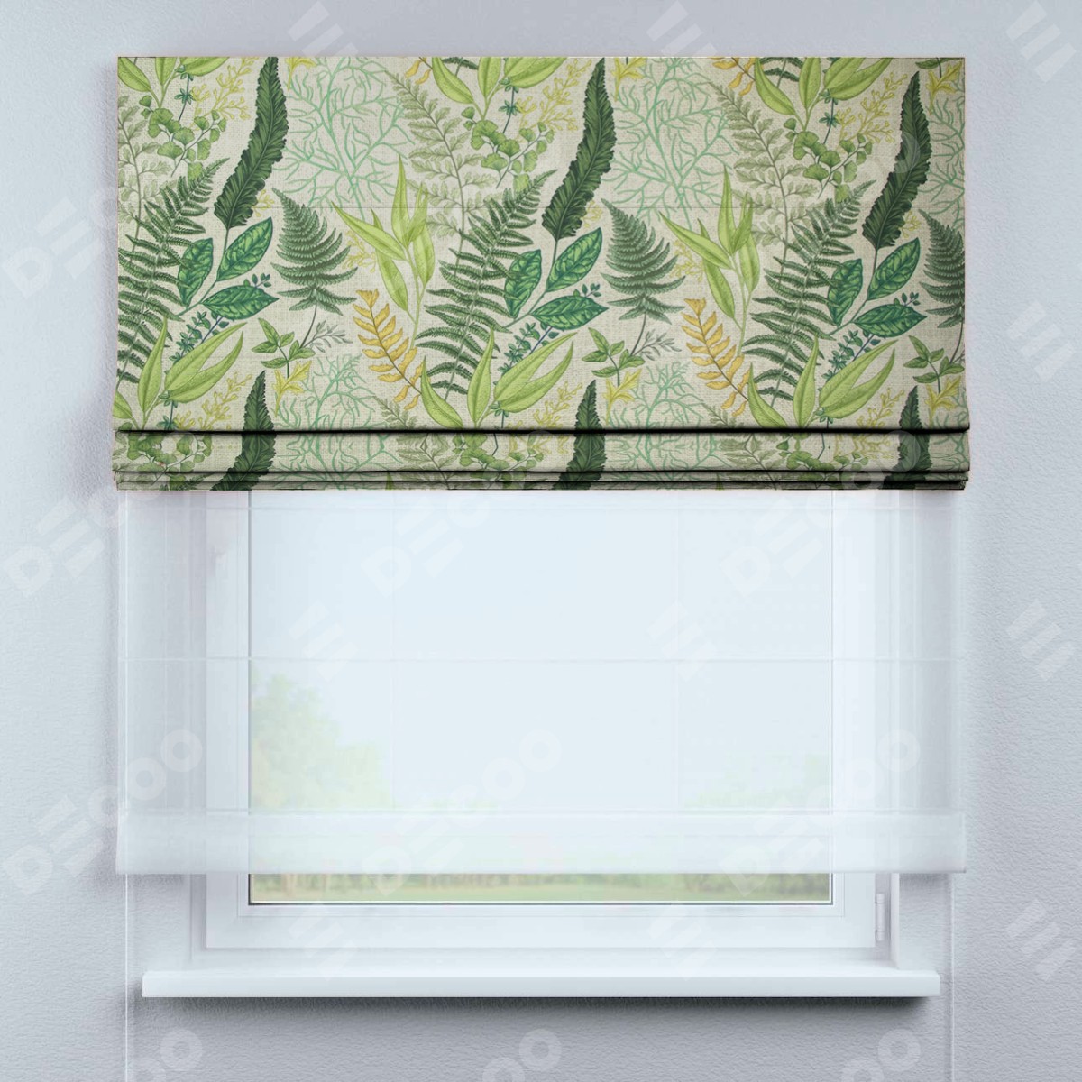 Римская штора день-ночь производителя «Cortin», используется для проёма, пошита из двух полотен, с лицевой стороны «Весна», вторая ткань тюль (по стандарту комплектуется тюль белого цвета артикул V-01). Имеет универсальный механизм и подходит для монтажа: на потолок, на стену и в нишу.