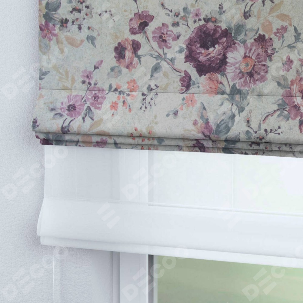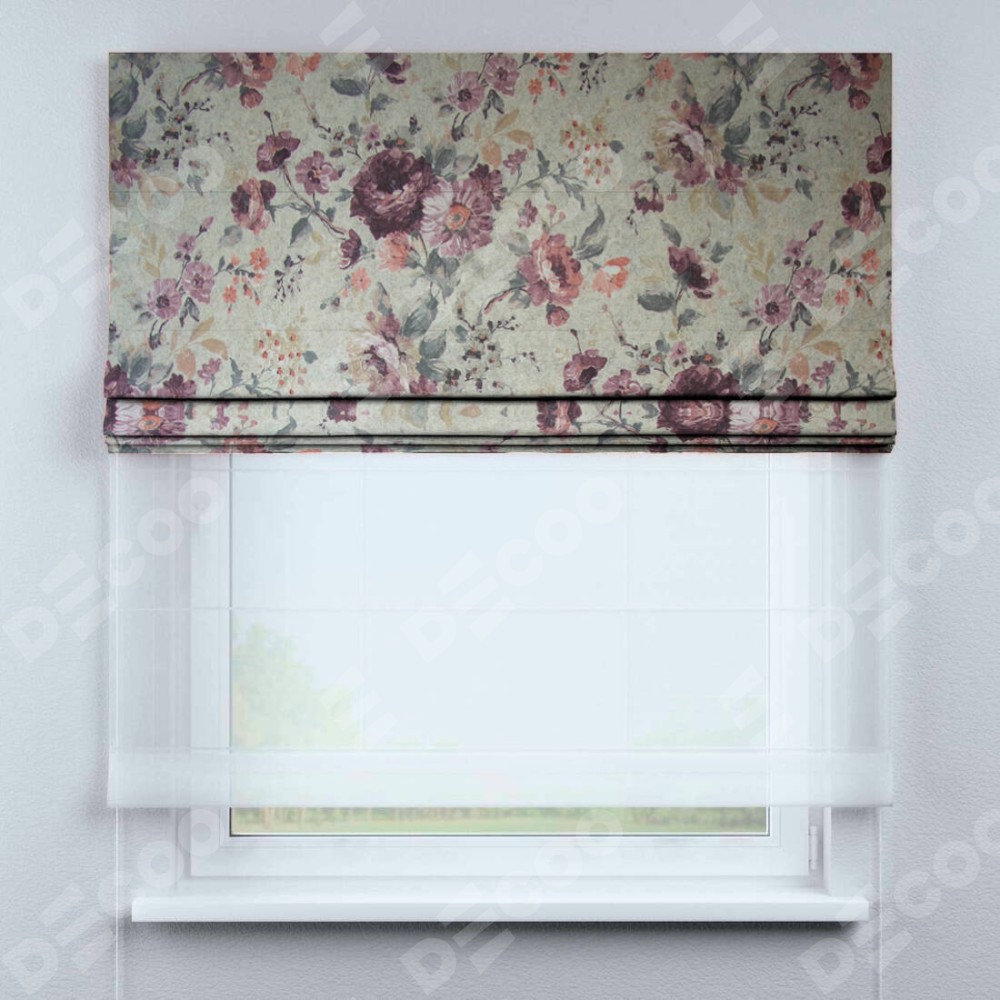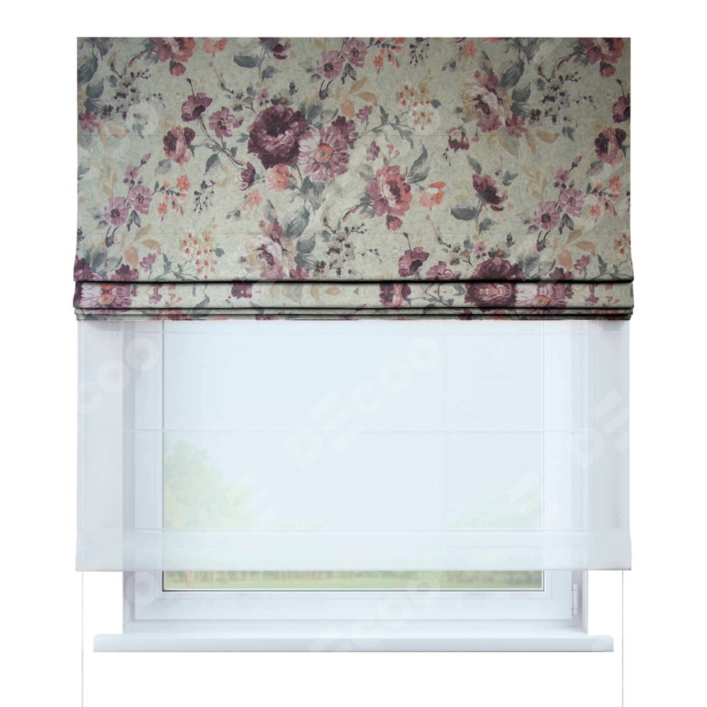 Римская штора «Кортин» день-ночь, ткань «Пионы»