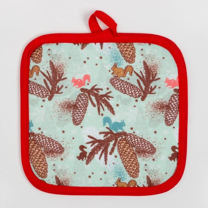 Кухонный новогодний набор Доляна«Шишки»,прихватка 17*17см,варежка 26*16см, фартук 60*80 см 100% п/э