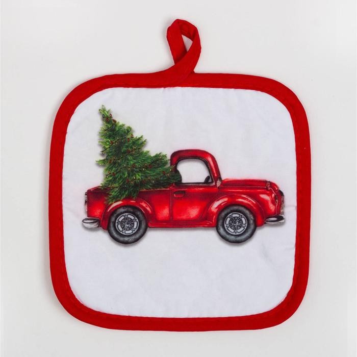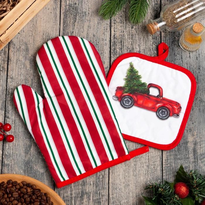 Кухонный новогодний набор Доляна «Новый год» цв.красный, прихватка 17*17 см, варежка 26*16 см,100% п/э