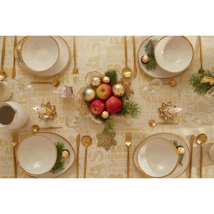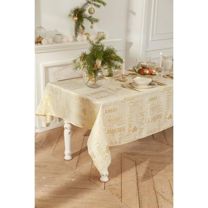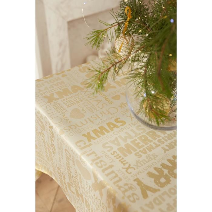 Скатерть Этель «Новый год: Merry xmas» цвет золотой, 142*220 +/-3 см, 115 ±10 гр, 100% п/э