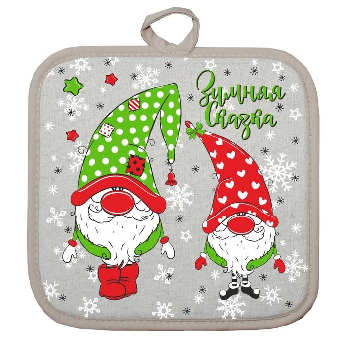 Прихватка Гномы 18×18 см, лен 50%, хлопок 50%, 160г/м2