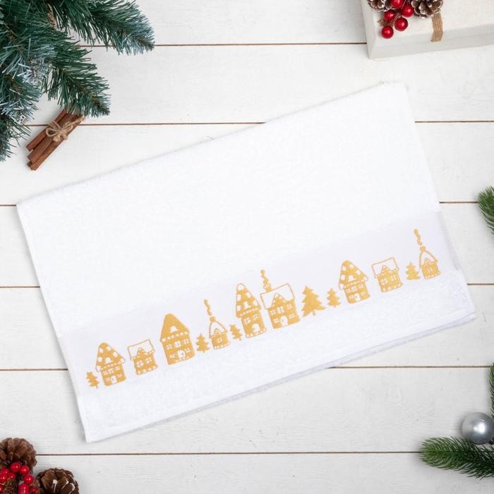 Полотенце махровое «Новый год: Домики» 50×90 см, 100% хлопок, 360гр/м2