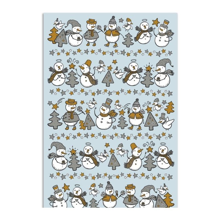 Полотенце Снеговики и елки 39×60 см, серо-голубой, хлопок 100%, 200г/м2