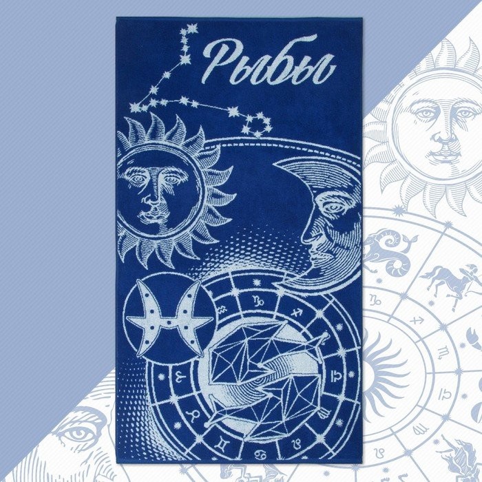 Полотенце махровое Этель «Знаки зодиака: Рыбы» синий, 67×130 см, 100% хлопок, 420гр/м2