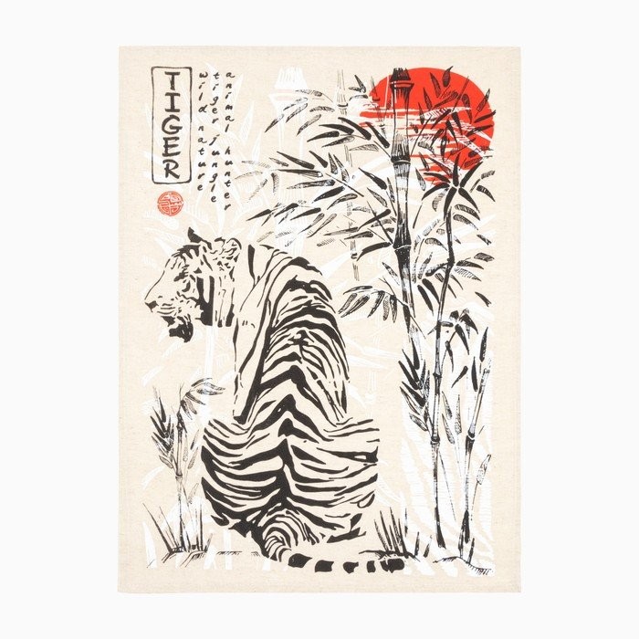 Кухонный набор Тигр Япония (полотенце 45×60+прихватка 18×18) лен 50%, хл 50%, 160г/м2