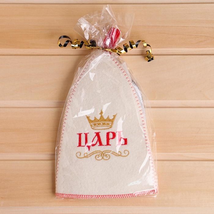Набор для бани шапка с мочалкой «Царь бани»