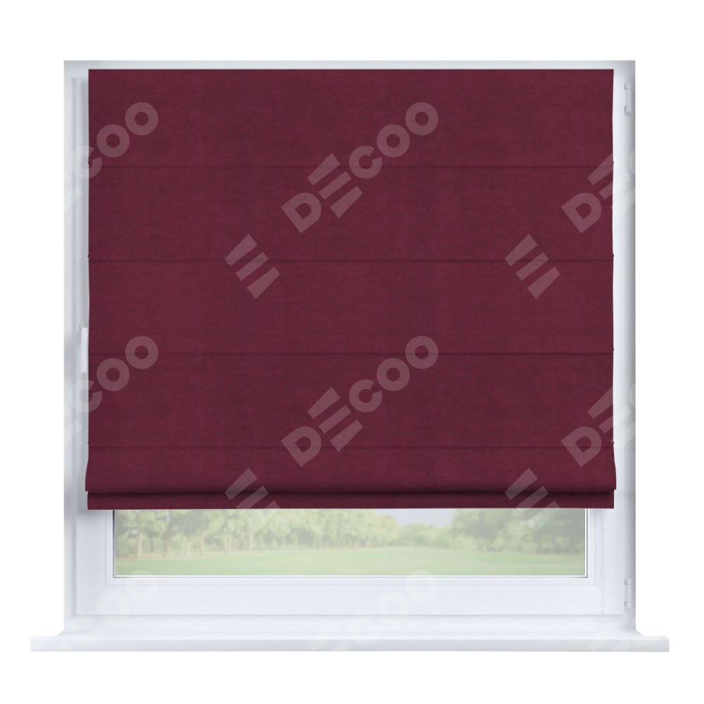 Римская штора производителя «Cortin», устанавливается на створку окна, пошита из ткани вельвет бордовый, артикул 85553. Штора шьётся по индивидуальным размерам, для данного типа римской шторы возможная ширина от 35 до 150 см., высота до 250 см.