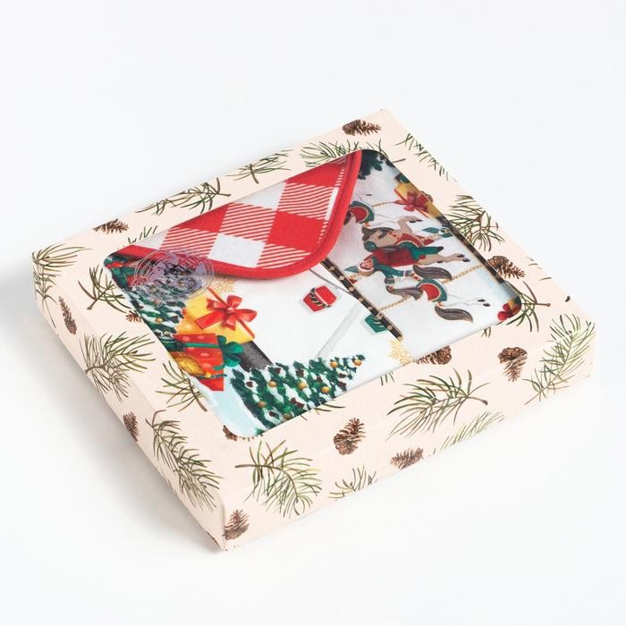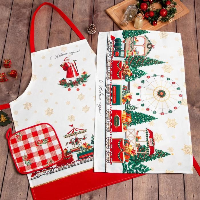 Набор подарочный «Этель» Новогодняя ярмарка, фартук, полотенце, прихватка