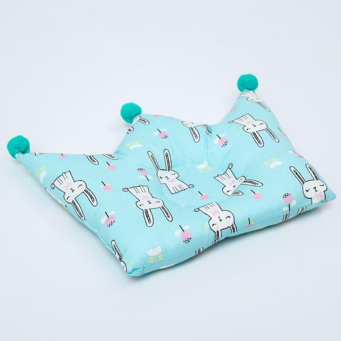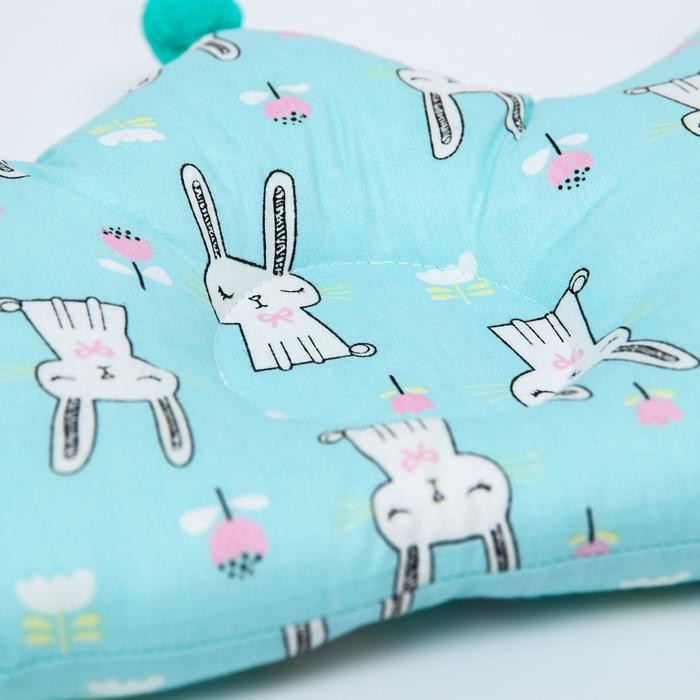 Подушка детская ортопедическая «Корона», зайки на бирюзовом