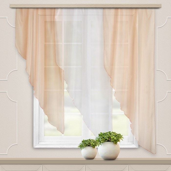 Комплект штор для кухни Мальва 280×150 см, персик, полиэстер 100%