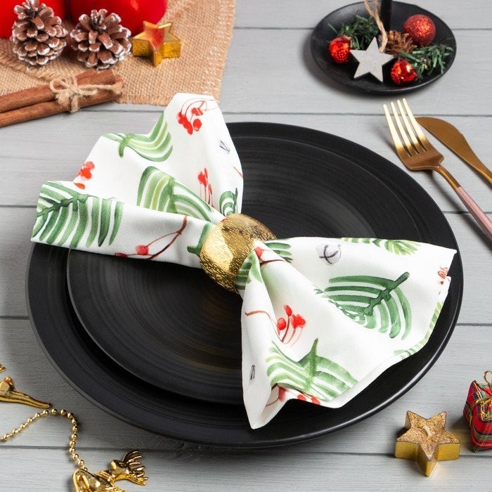 Набор салфеток с декорат. кольцами «С Новым Годом» 40×40 см — 2 шт, 100% хл, саржа 190гр/м2