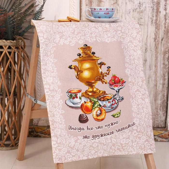 Полотенце 45×60 см, Дружеское чаепития (рис. 1), вафля, 170 гр/м2, хлопок 100%