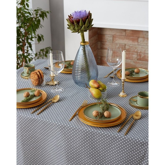 Набор Доляна скатерть 145х200см/салфетки 40х40см 4шт, Горох сер, 100%пэ, рогожка 200 гр/м
