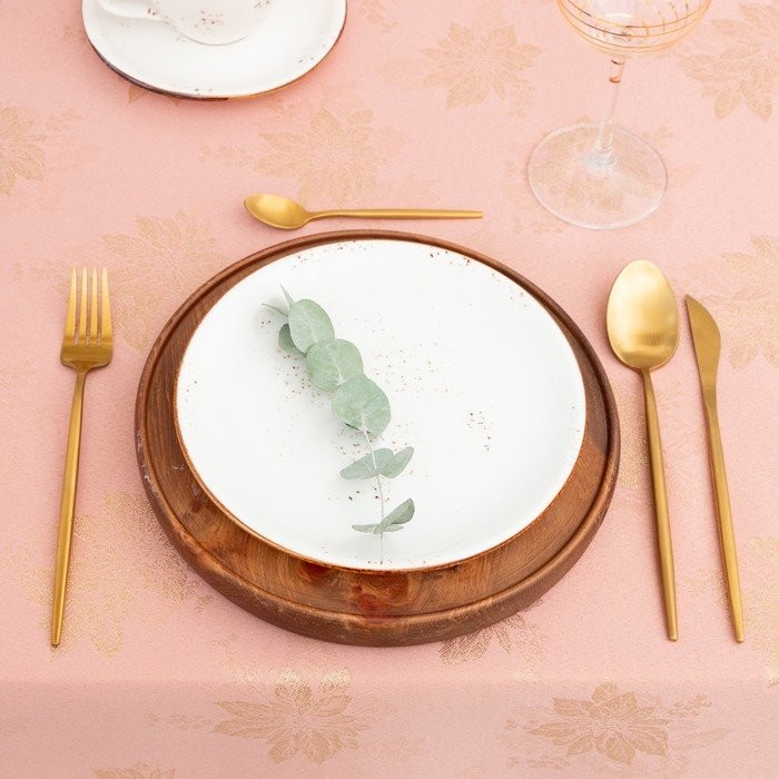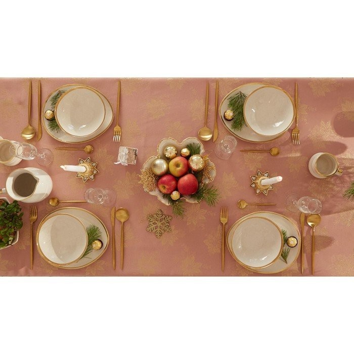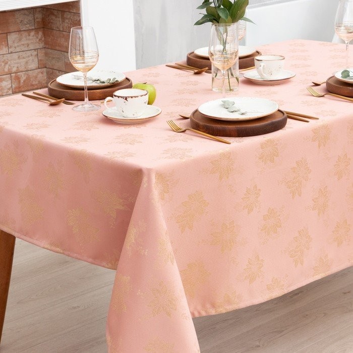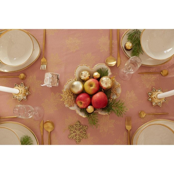 Скатерть Этель «Пуансеттия» цв.розовый, 142*283 +/-3 см, 115 ±10 гр,100% п/э