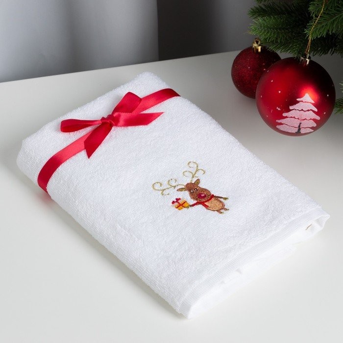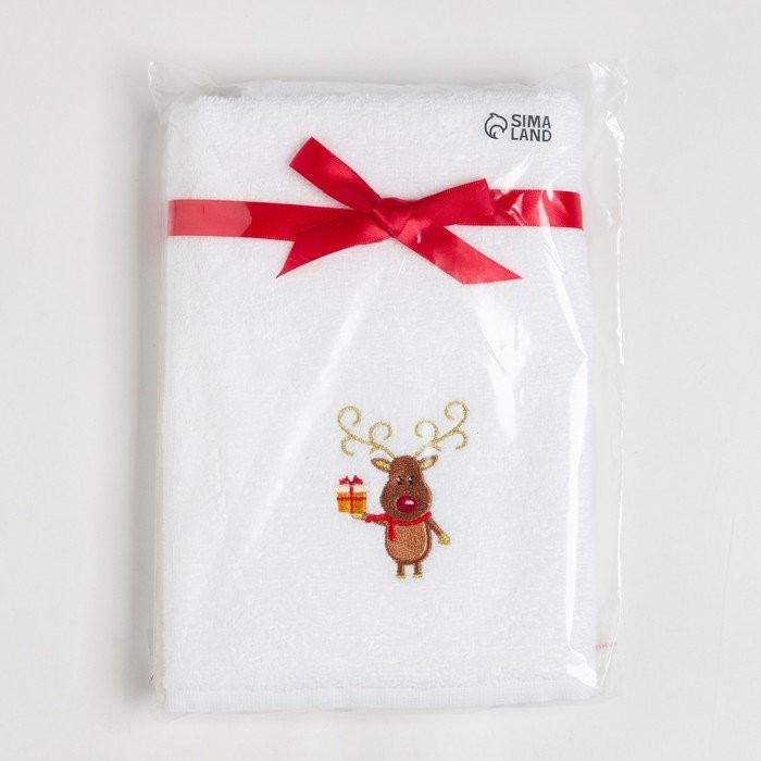 Полотенце подарочное Этель «Олень с подарком» 50*90 см, 100% хл, 340 гр/м2