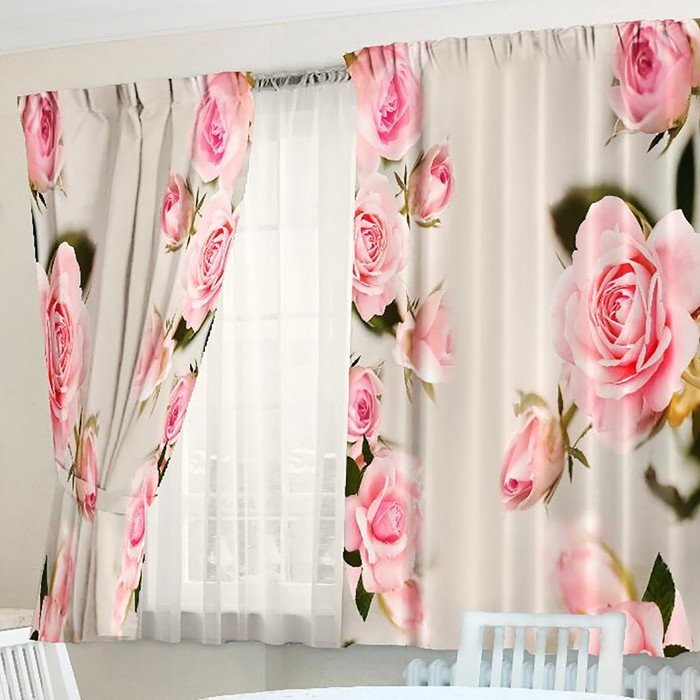 Фотошторы для кухни Цветочные грезы 145х160см-2шт, габардин, пэ 100%, 145г/м2
