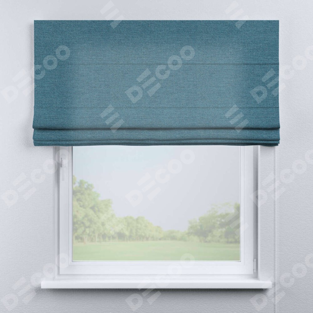 Римская штора производителя «Cortin», используется для проёма, пошита из ткани лён голубой, артикул ткани 63741. Имеет универсальный механизм и подходит для монтажа: на потолок, на стену и в нишу.
