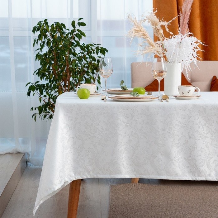Скатерть Этель «Venzel» цв.серебро, 142*220 +/-3 см, 115 ±10 гр,100%