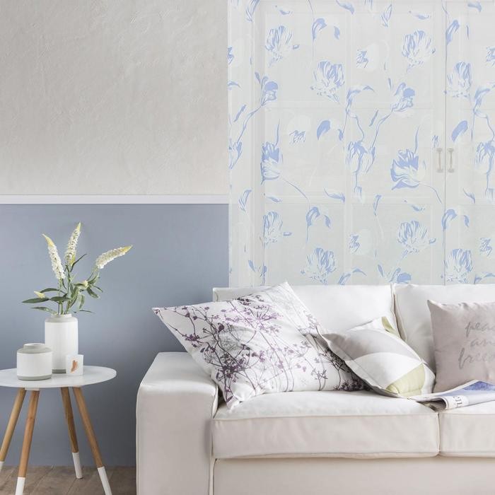 Тюль «Этель"Цветочная иллюзия (голубой) б/ утяжелителя, ширина 140 см, высота 250 см