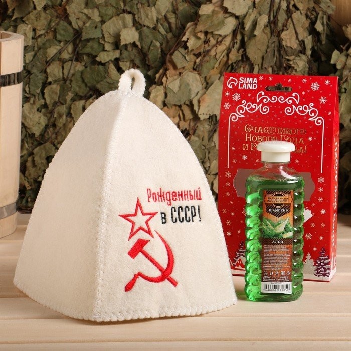 Подарочный набор Новый год Шапка «Рождённый в СССР» + Шампунь Алоэ
