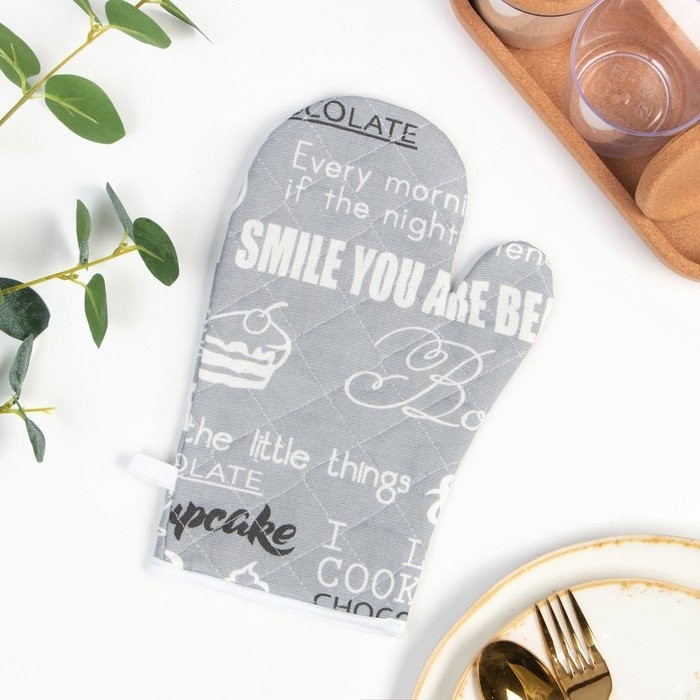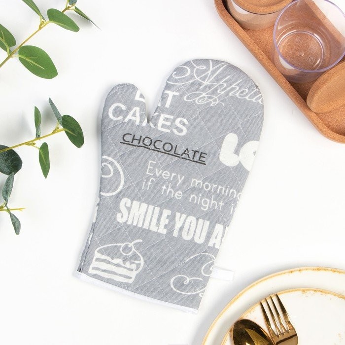 Прихватка-рукавичка Мари Санна Леттеринг 9257−2, серый, рогожка